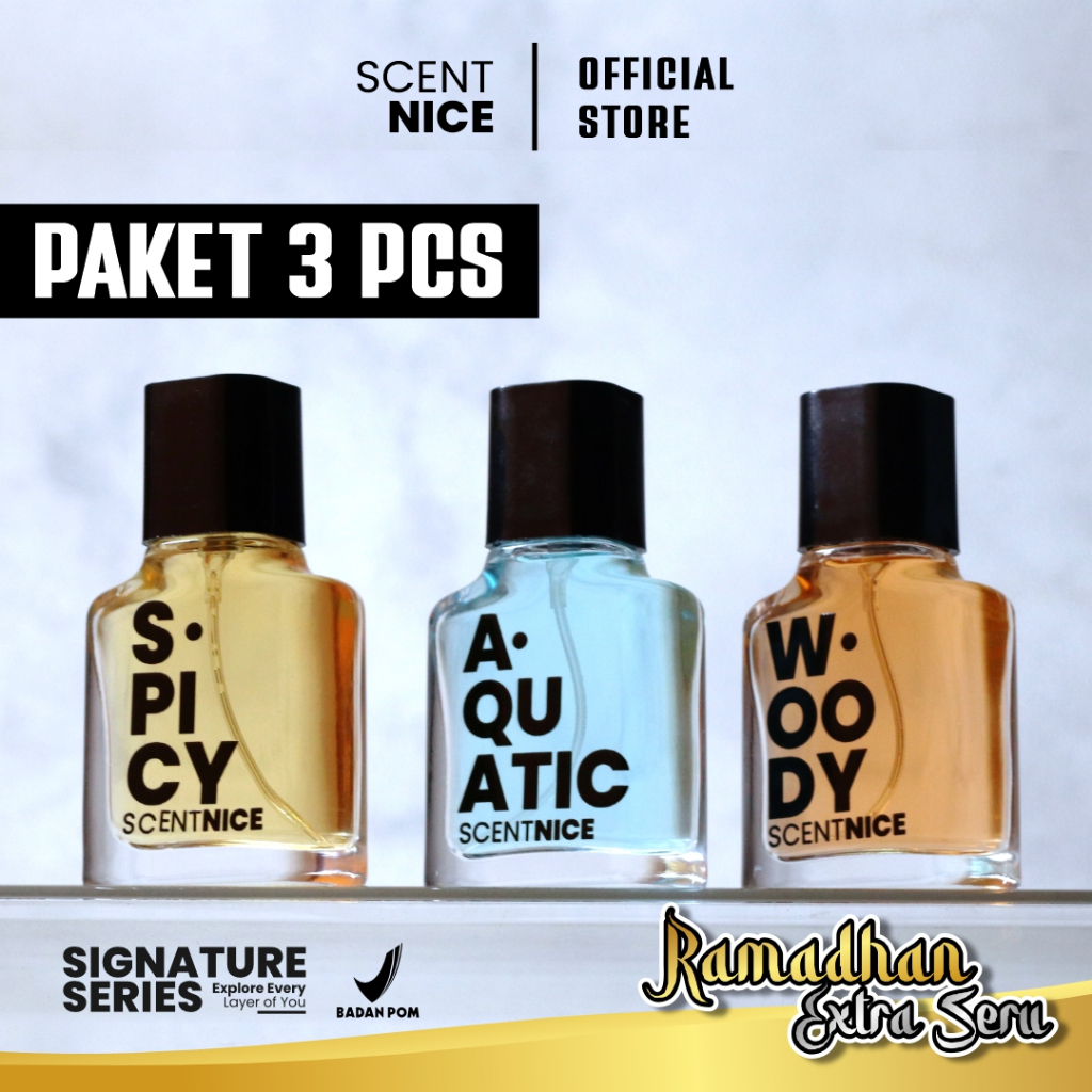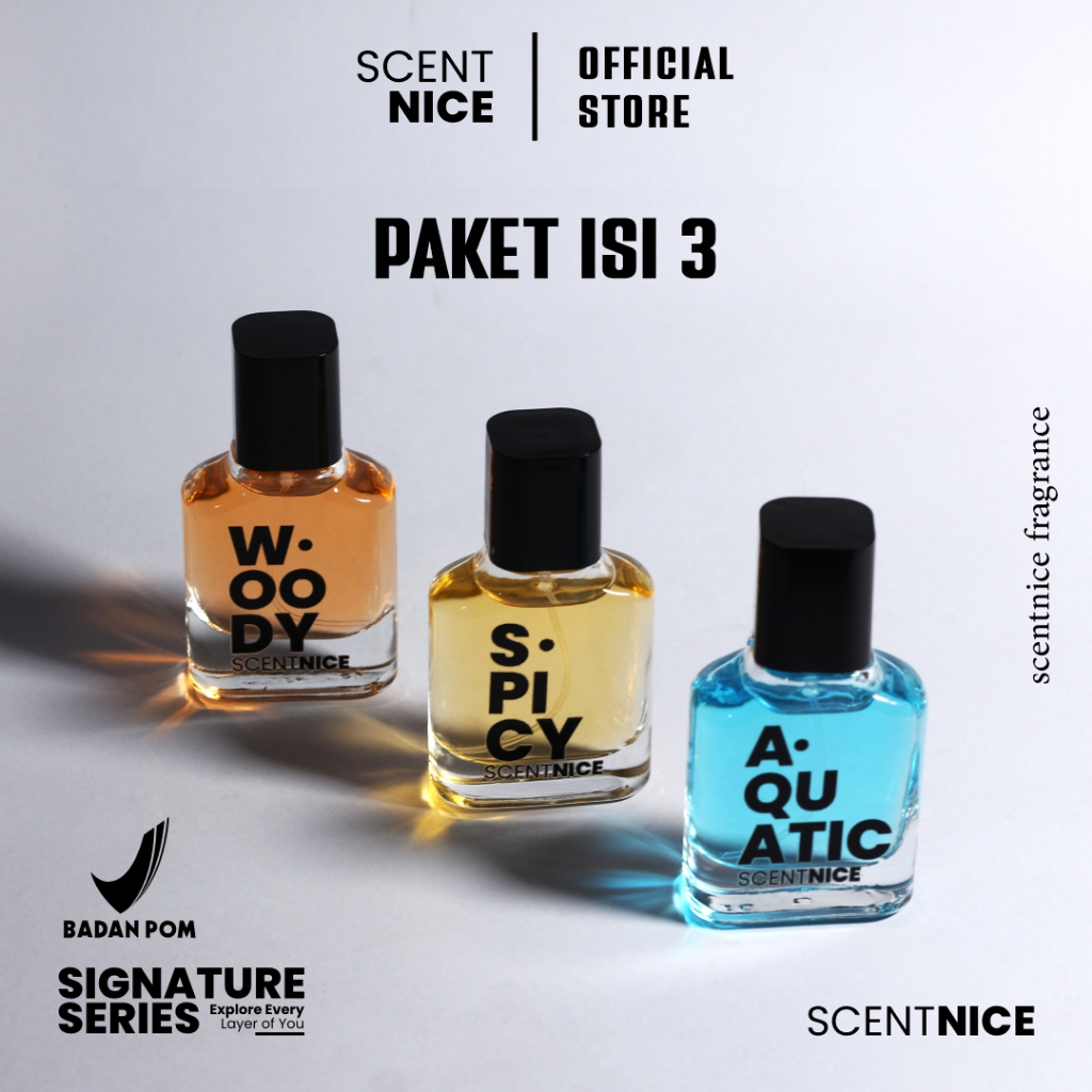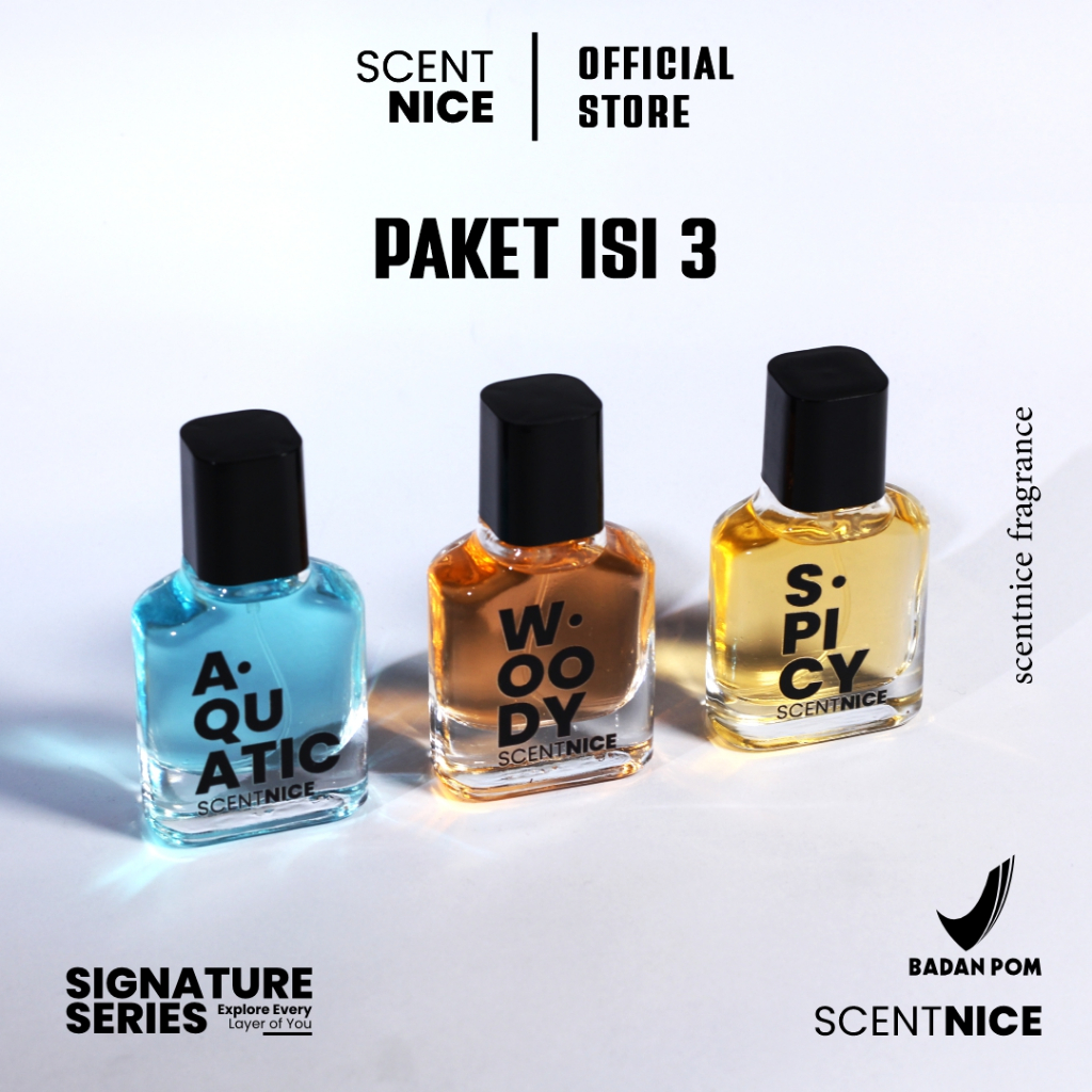 Scentnice Signature for Men Pack 3 Pcs Parfum Pria Spicy - Woody - Aquatic - Perfume Laki Laki Minyak Wangi Tahan Lama M