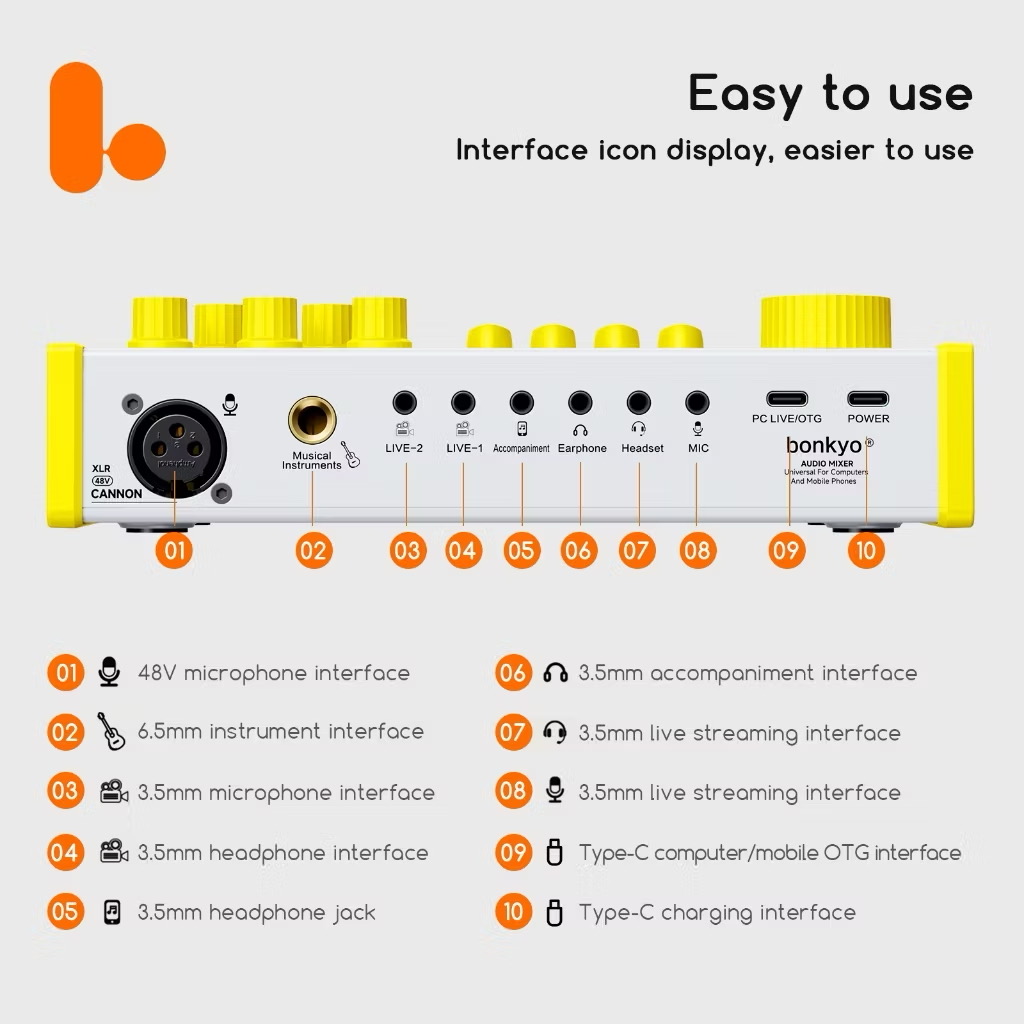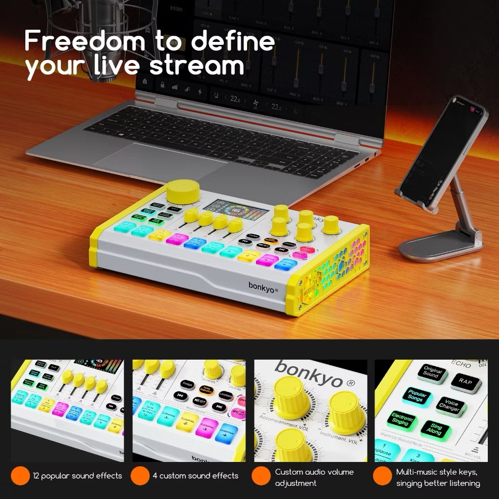 Bonkyo Z10 Sound Card Bluetooth Live Z10 5V Kartu SuaraTekstur Logam dan Pencahayaan RGB Mixer Audio Live untuk Karaoke