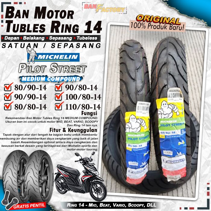 Ban Motor Beat Michelin Pilot Street Ring 14 Tubles Ban Motor Tubeless Mio Beat Vario Ring 14 Tubles