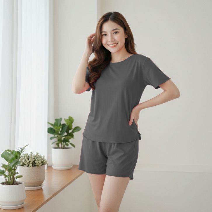 Setelan Baju Wanita Oversize Oneck One Set 8007