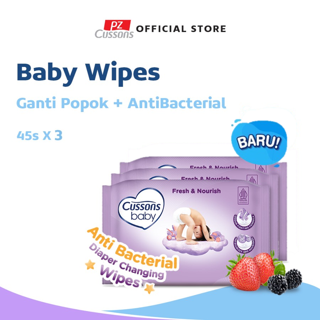 Cussons Baby Wipes Fresh & Nourish-Tisu Basah Bayi-Ganti Popok 45's X3 Terlaris