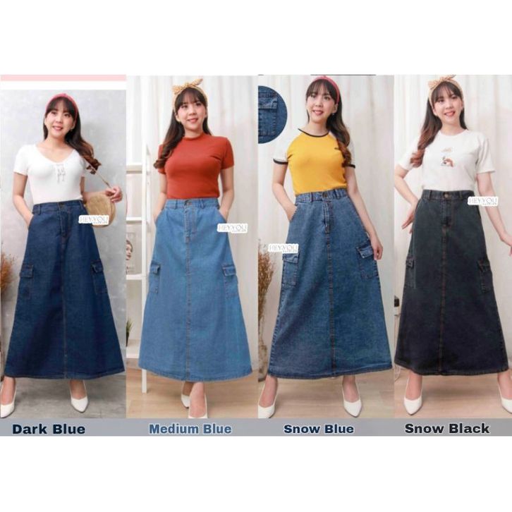 rok panjang cargo kancing satu bahan premium jeans igesf
