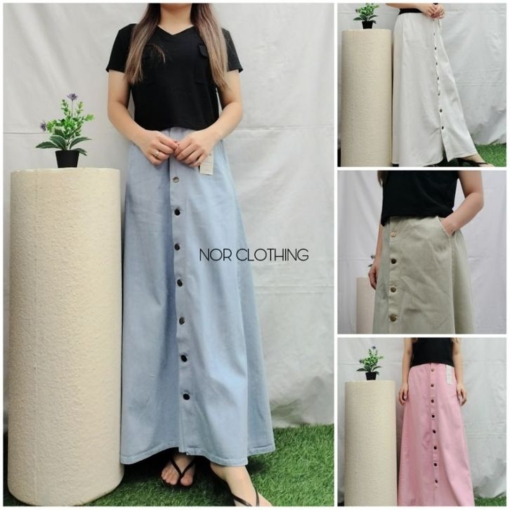 TERBARU Rok Panjang Jeans Wanita Full Kancing Belakang Karet efelr