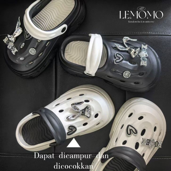 LEMOMO Sandal Baim Wanita Perempuan Kelinci Metal Blok Warna Sandal Baim Perempuan Sandal Baim Wanita Korea EVA