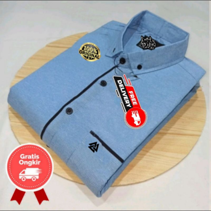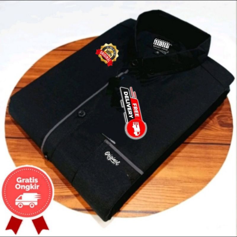 (Gratis Ongkir) kemeja polos lengan pendek pria - kemeja polos motif list lengan pendek pria - kemeja kantor polos lenga