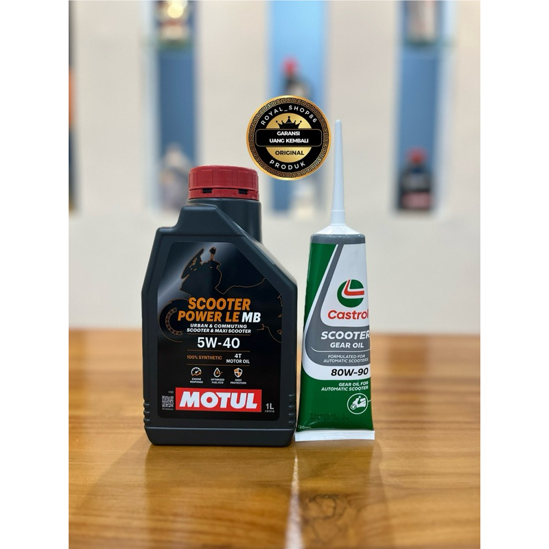 OLI MOTUL SCOOTER POWER LE SAE 5W-40 Full Shynthetic 1 LITER (ORANGE) & OLI GARDAN MOTUL 120 ML / OLI GARDAN CASTROL 120
