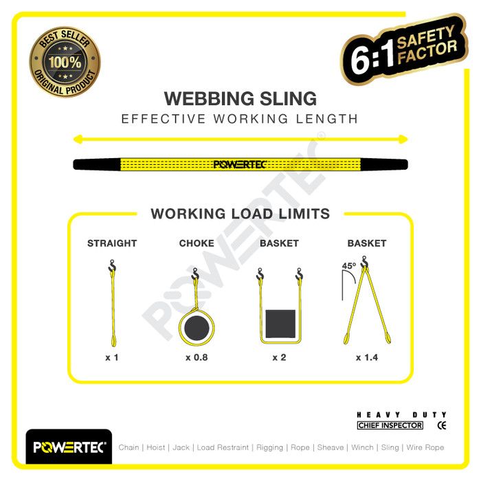Webbing Sling Belt / Tali Angkat 2 Ton x 10 Meter POWERTEC Double Ply