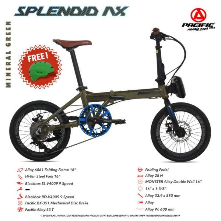 Sepeda Lipat Pacific Splendid 16 Plus 9 Speed Free Tas + Helm