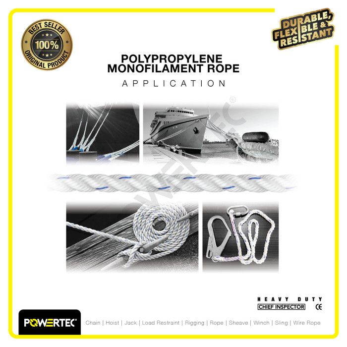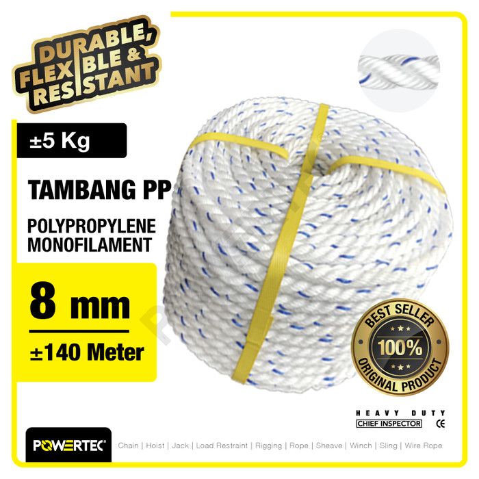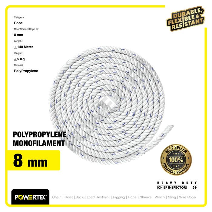 Tali Tambang PP 8mm x 200m Polypropylene PP Mono Rope POWERTEC