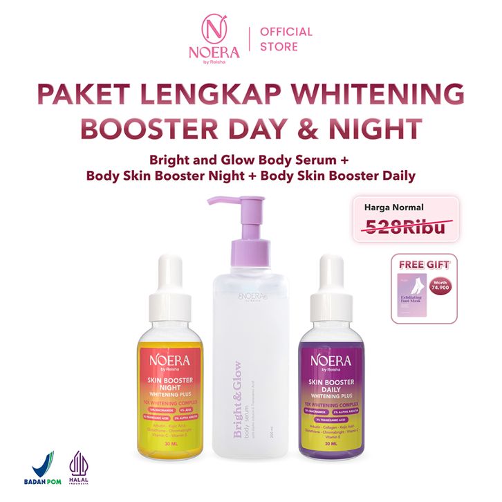 Noera Noera Paket Lengkap Whitening Booster Day & Night | Bright and Glow Body Serum + Body Skin Booster Daily + Body S