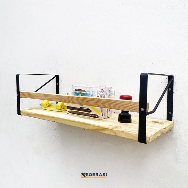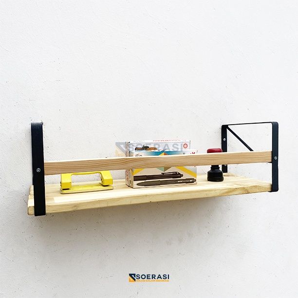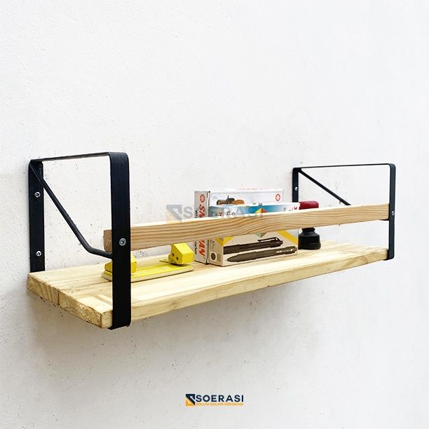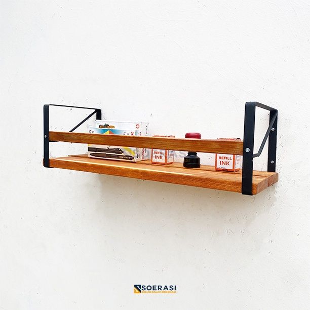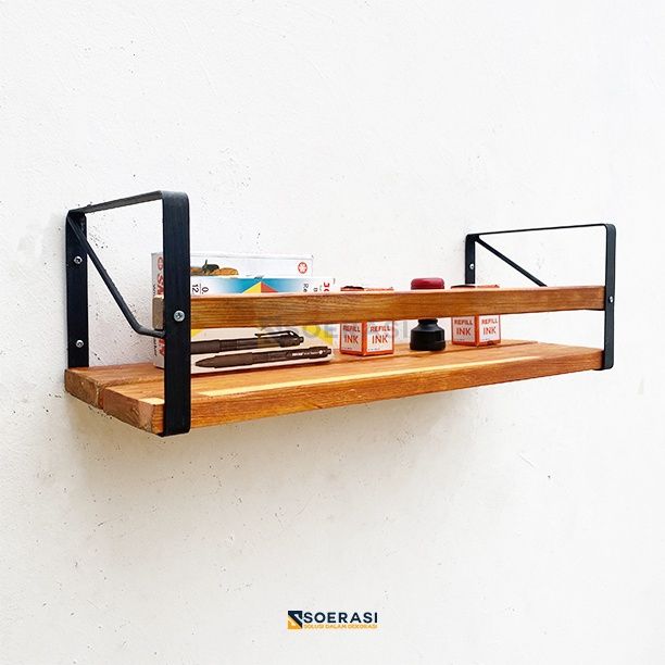Rak Dinding Tempel Gantung Ruang Kerja Kantor Ambalan Susun Kayu Dan Besi Penyimpanan Alat Tulis Buku Dokumen Hiasan