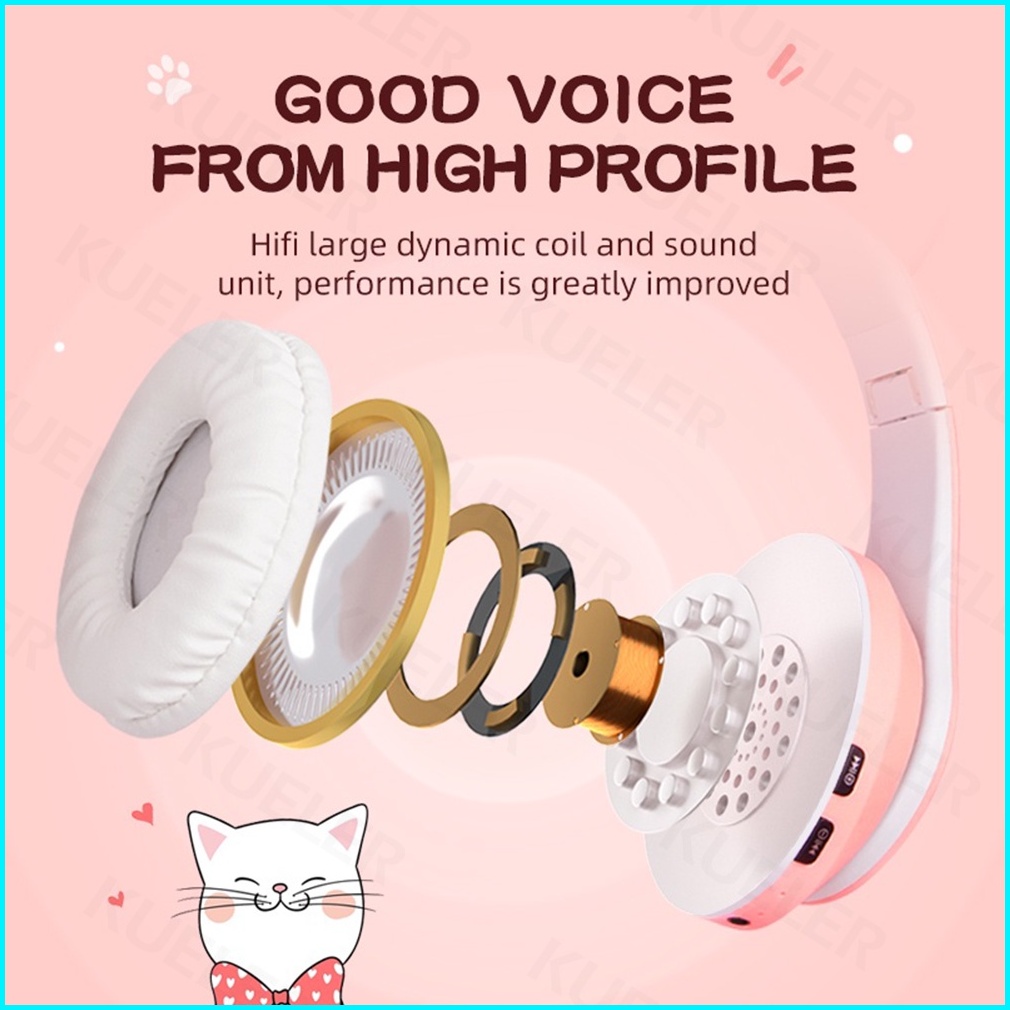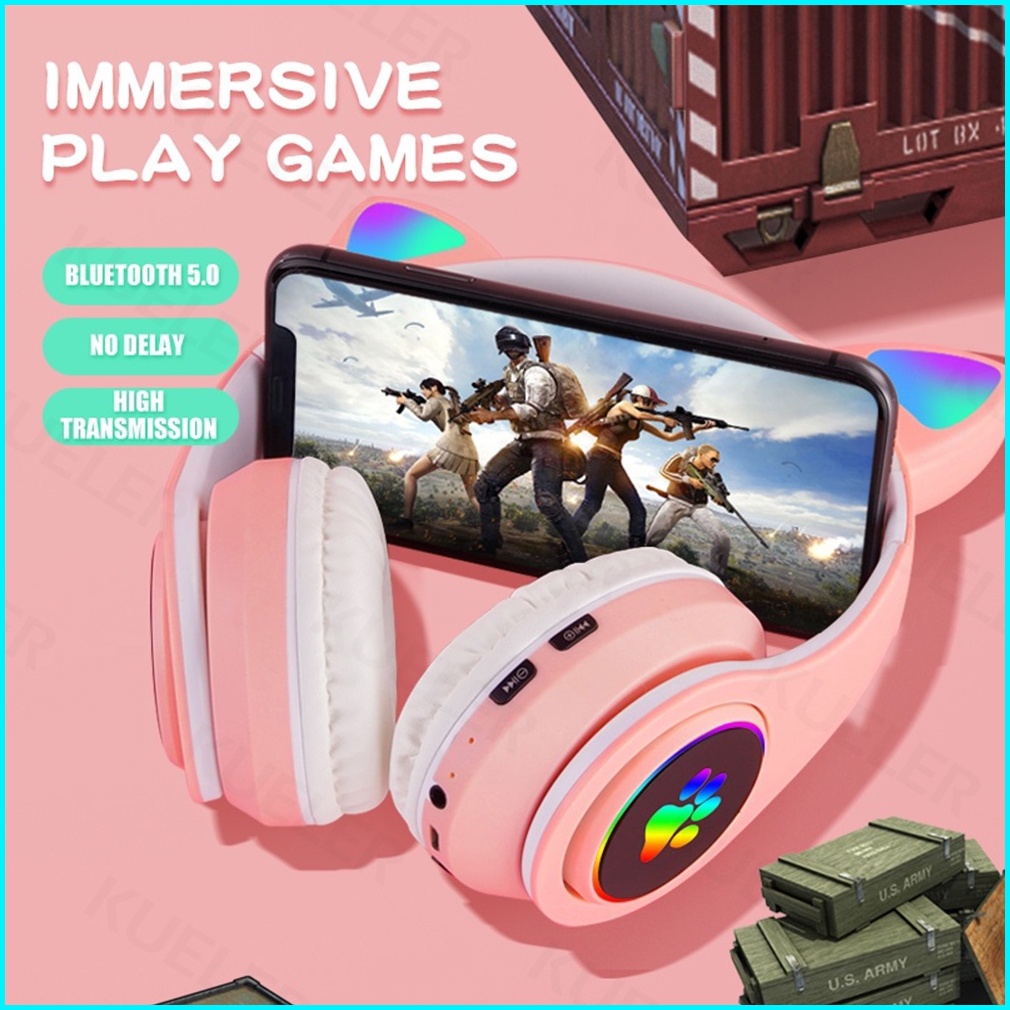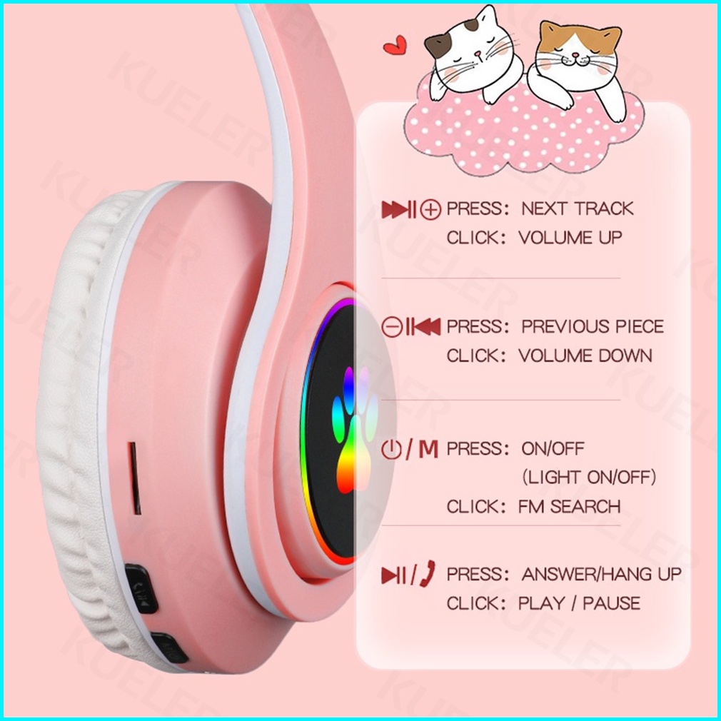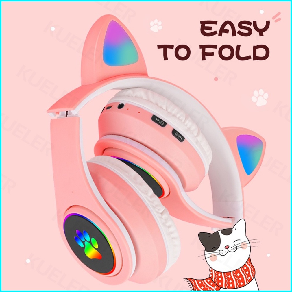 Led Color Light Cute Cat Ear Headphone With Mic B39m Foldable Wireless Headphones Bluetooth Earphone Hifi Stereo Headset