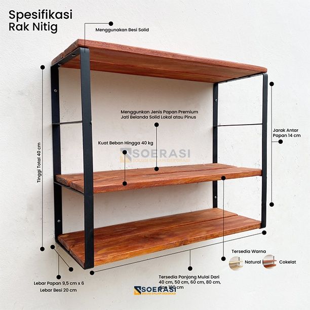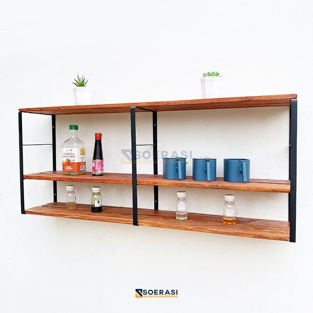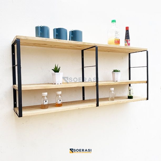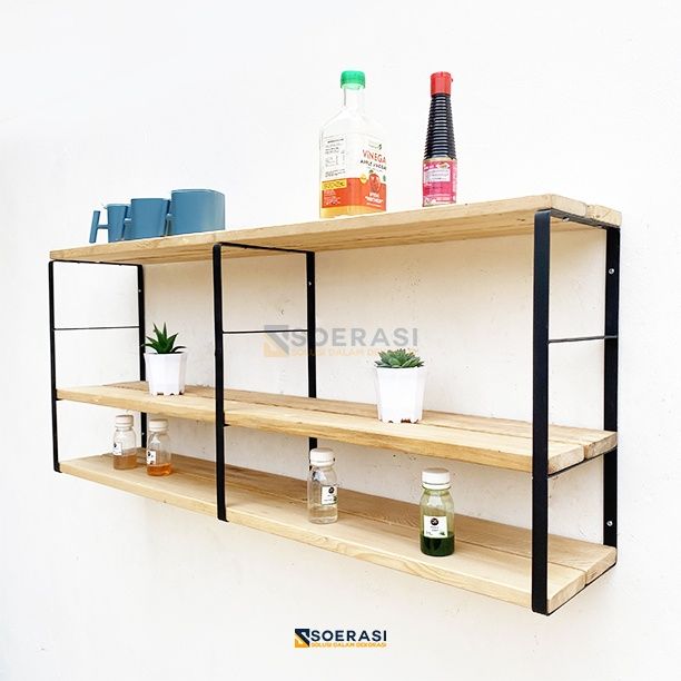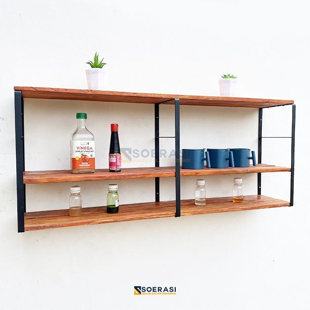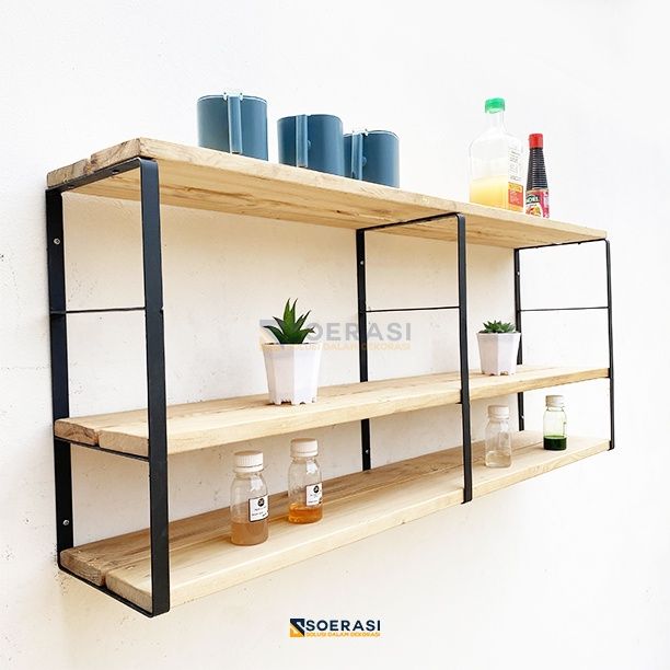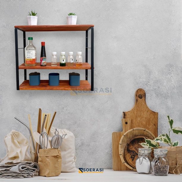Rak Dinding 1 Meter Tempel Gantung Ambalan Susun Tingkat 3 Dapur Besi Dan Kayu Penyimpanan Alat Masak Terbaru