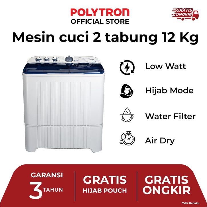 MESIN CUCI POLYTRON PWM 7073P 1/2 TABUNG 7-14Kg TWIN TUB GARANSI RESMI MURAH BERKUALITAS BEST SELLER TERBARU TANPA DP