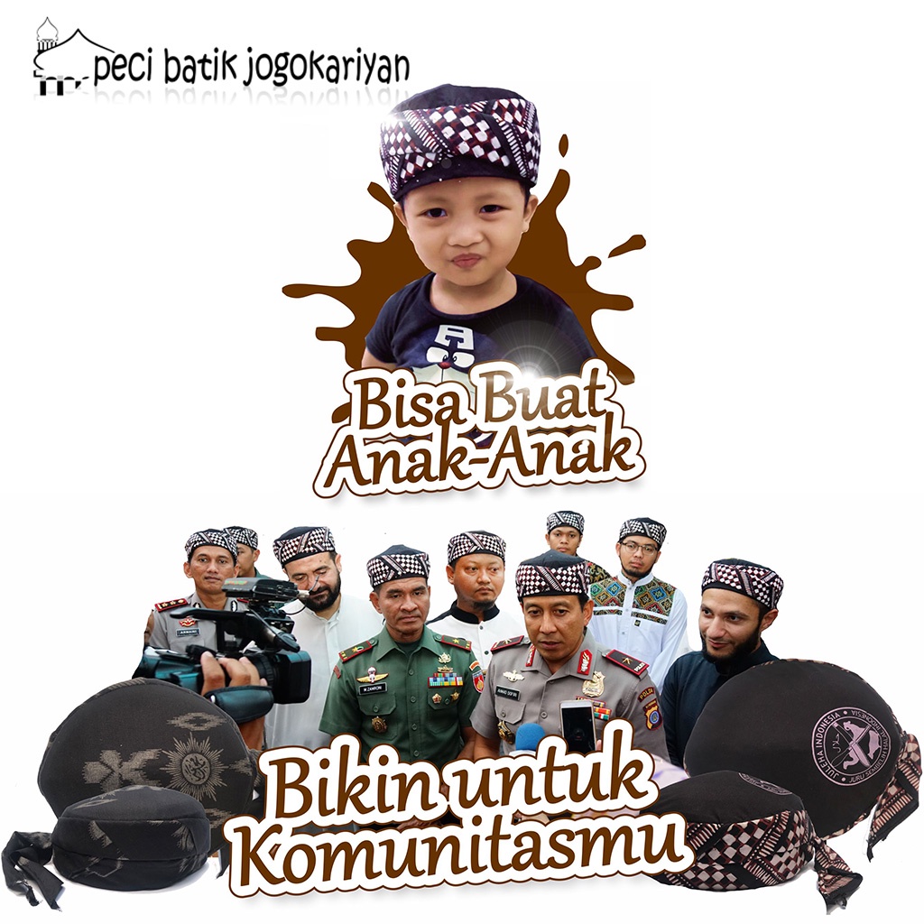 Peci Batik Jogokariyan Asli Motif Terbaru Batik Lurik Hitam (SP3) Kopeah Songkok Pria Dewasa Dan Peci Anak - Anak Peci K
