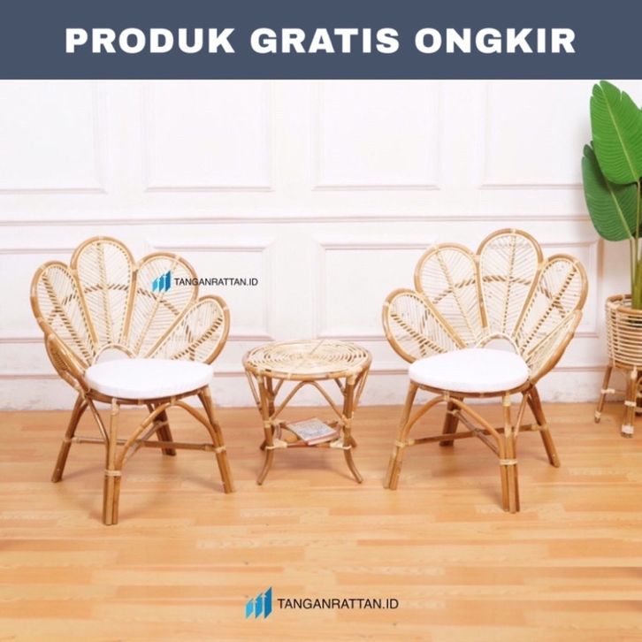 Kursi Teras Daun Rotan Gratis Bantal Dan Meja 1 Set / Kursi Dekorasi Teras Rotan Minimalis Finishing