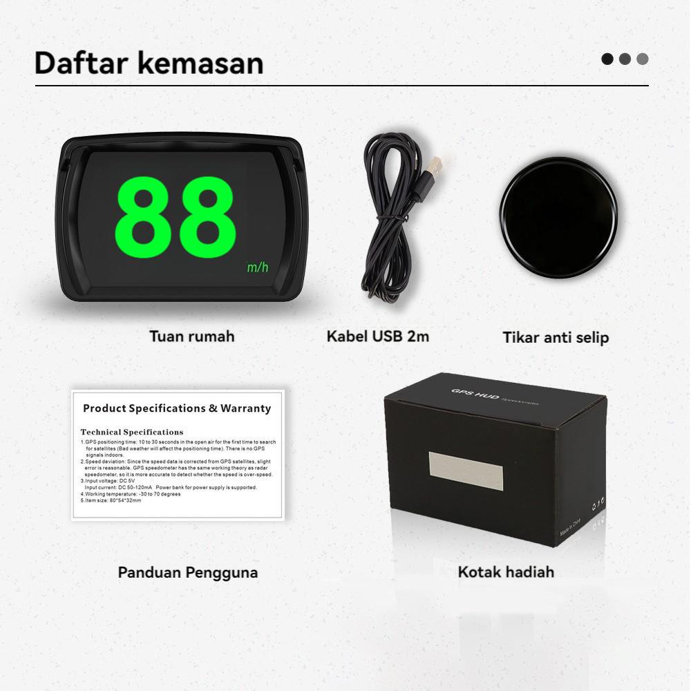 Speedometer GPS Mobil Dengan Tampilan HUD Headup KM/H MPH Huruf Besar LED Untuk Mobil dan Motor