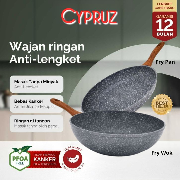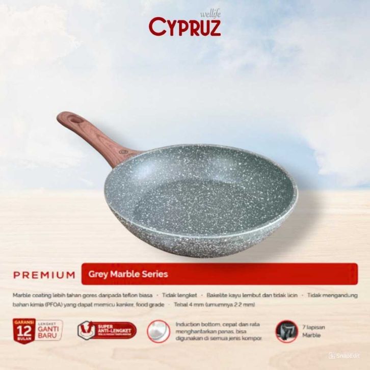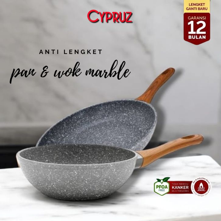 Wajan Kuali Kuali Wajan Cypruz cookware marble fry pan wajan anti lengket fry wok penggorengan bisa untuk kompor induks