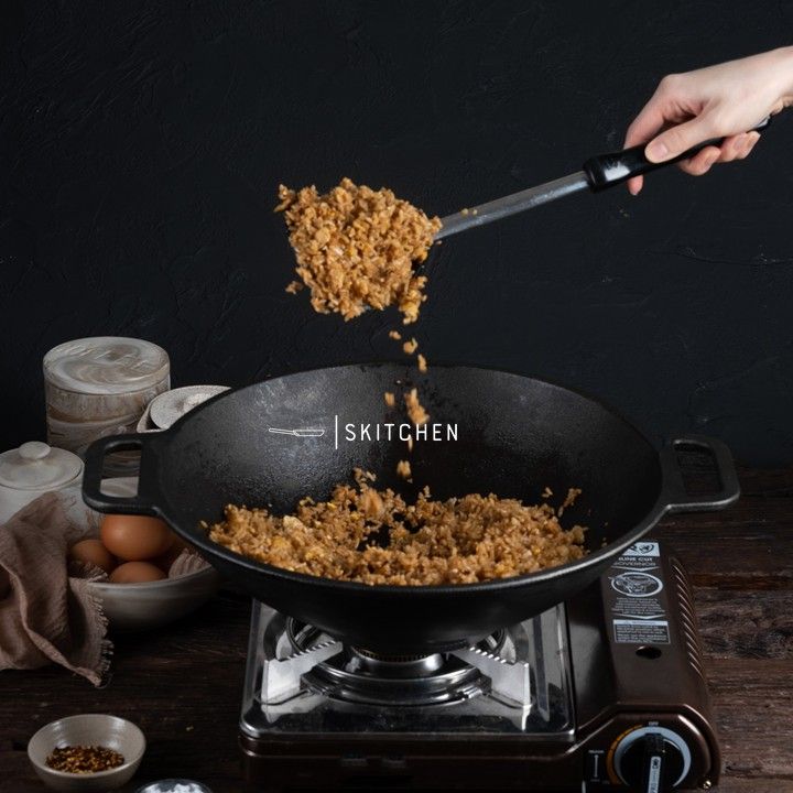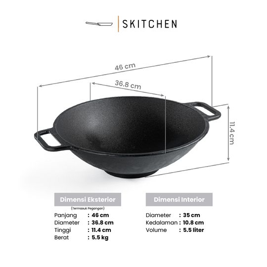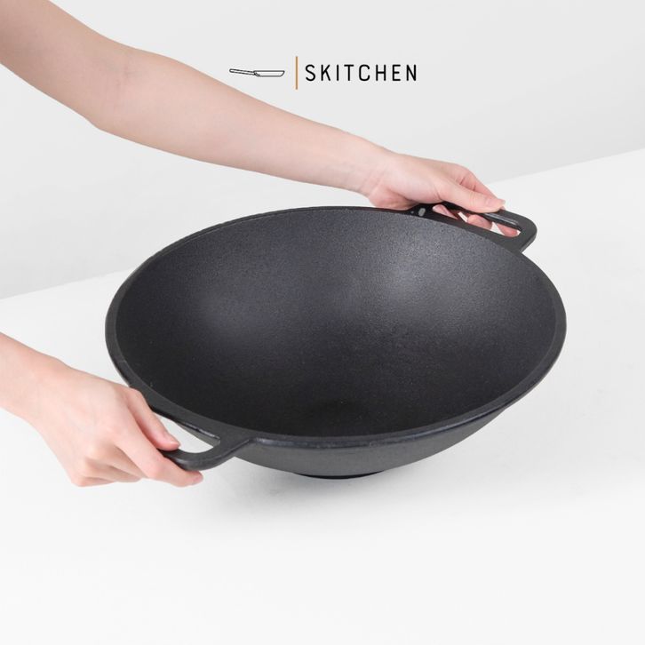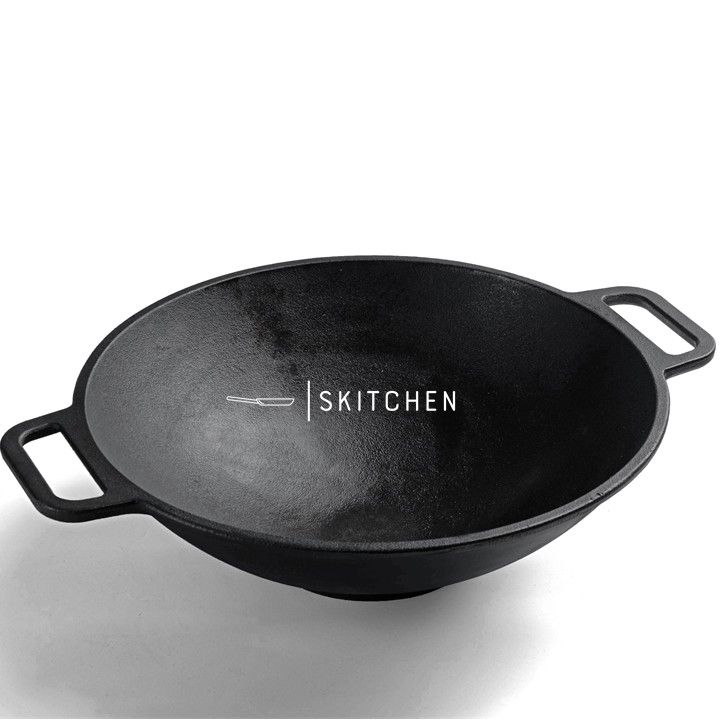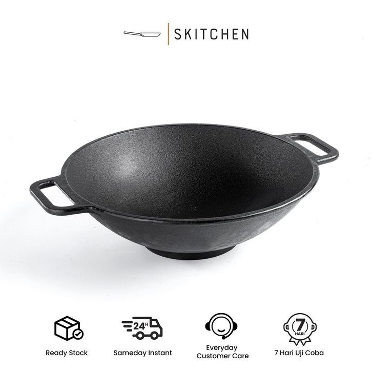 Wajan Kuali Kuali Wajan SKITCHEN Cast Iron Waingapu Wok - Wajan Penggorengan Besar Besi Cor Premium Anti Gores Tahan Pa