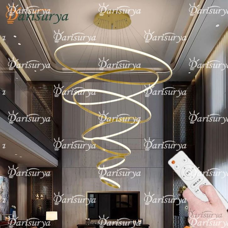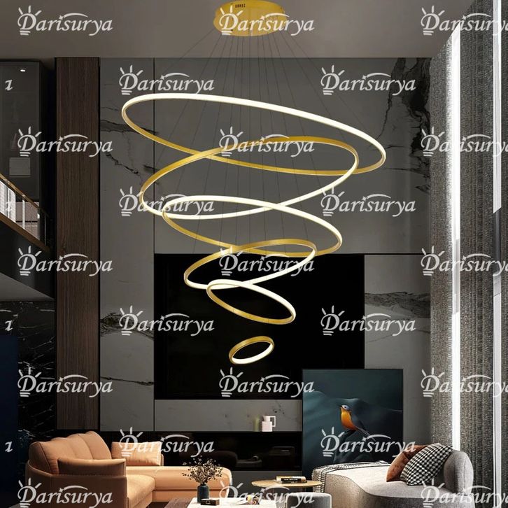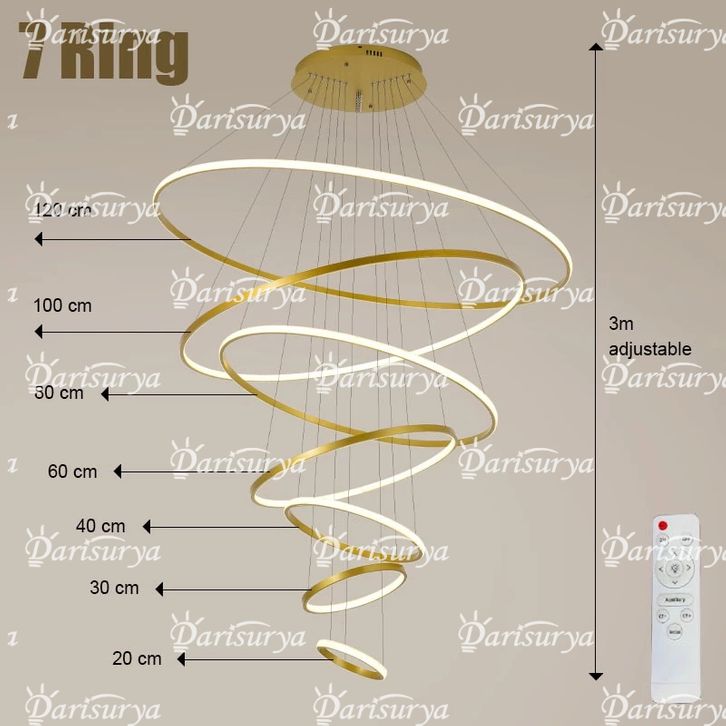 Lampu Hias Mewah Lampu Gantung Ring M0Dern Minimalis 9old 7 Ring 120CM LED 3 Warna Pendant Light Void Ruw4ng Tamu Caha