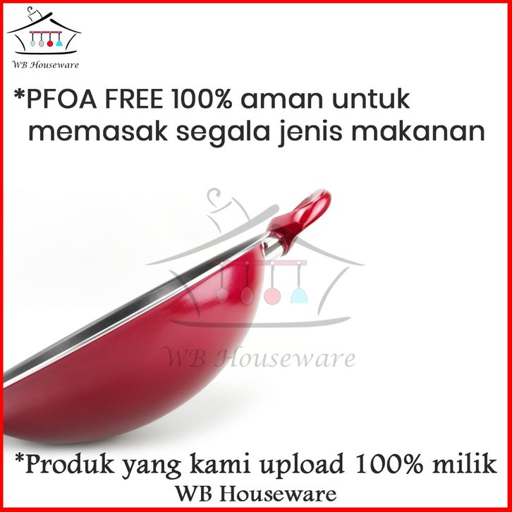 Wajan Kuali Kuali Wajan wajan kuali anti lengket teflon 32cm / panci penggorengan / Wok 32cm SUPRA rosemary - MERAH