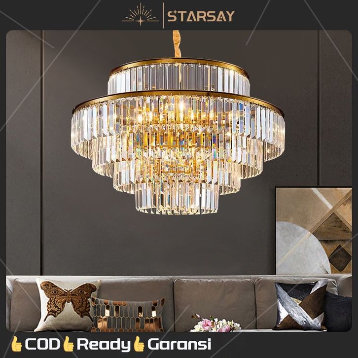Lampu Hias Mewah ✊Garansi&Hadiah✊Lampu Gantung Kristal K9 Cahaya Mewah M0Dern 9old Bronze Crystal 60/80cm Chandelier Ru