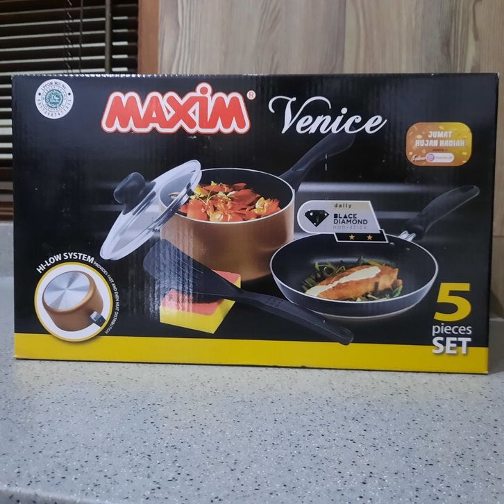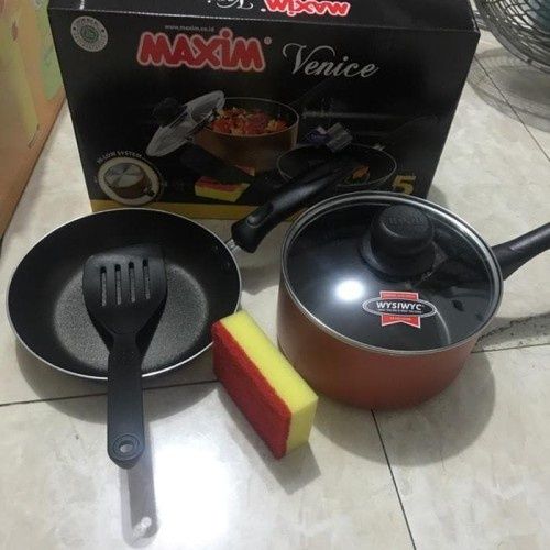 Wajan Kuali Kuali Wajan MAXIM Venice SET 5 Panci + Tutup Kaca + Wajan + Spatula + Sponge
