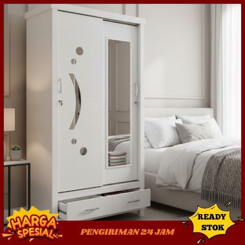 LEMARI PAKAIAN SLIDING 2 PINTU Lemari pakaian gantungan hambalan Best seller