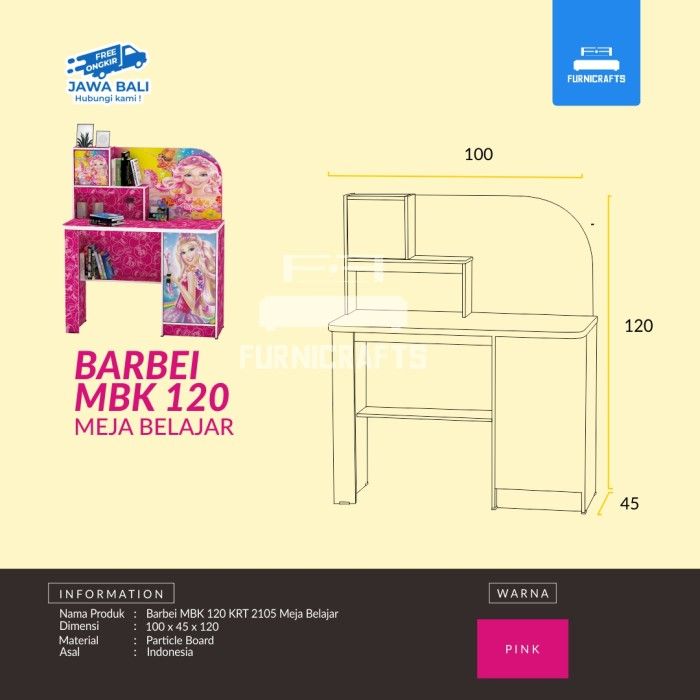 MEJA BELAJAR ANAK KARAKTER MURAH / KUMA MEJA BELAJAR 120 - MBK 2105 Barbie