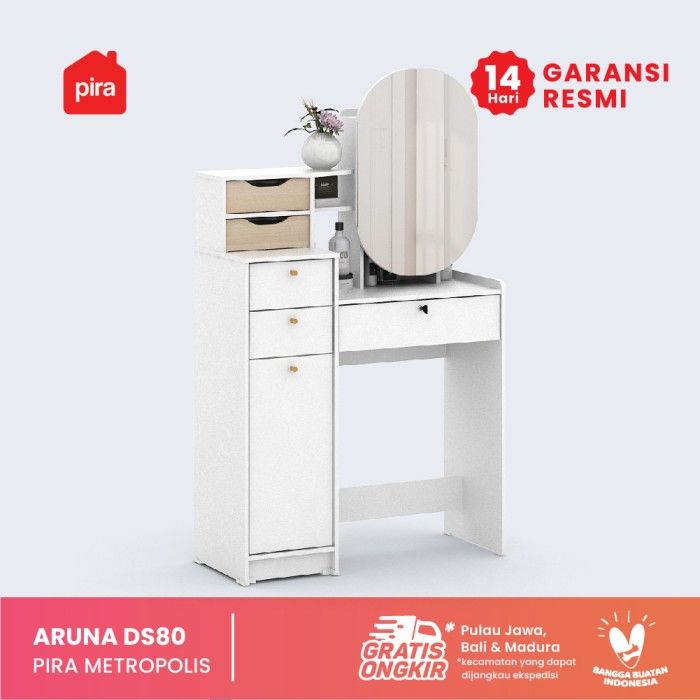 PIRA METROPOLIS OX - ARUNA DS80 Meja Rias dengan Kaca Geser - WHITE - PRO OAK