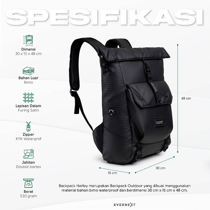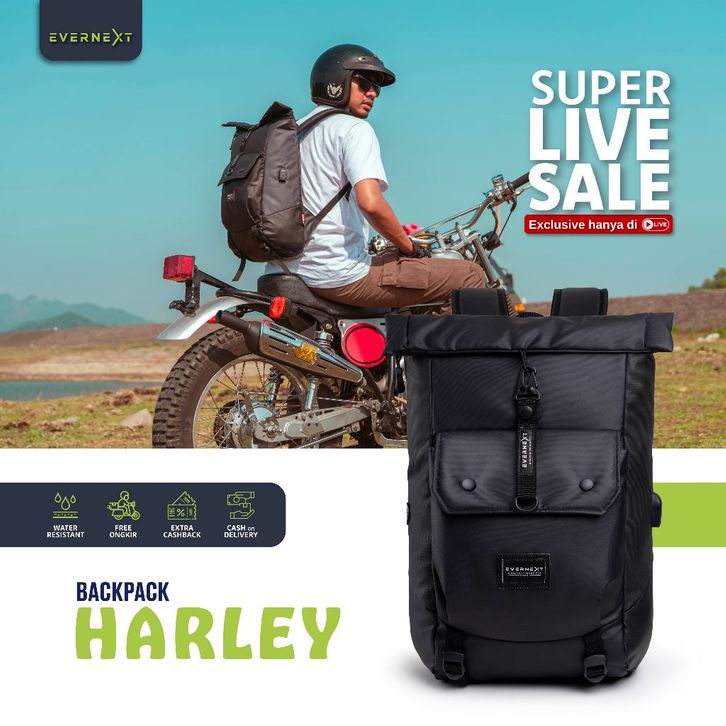 Evernext - Tas Ransel Pria Waterproof Tas Sekolah Cowok Backpack Laptop Harley Tas Kuliah Kerja Pria