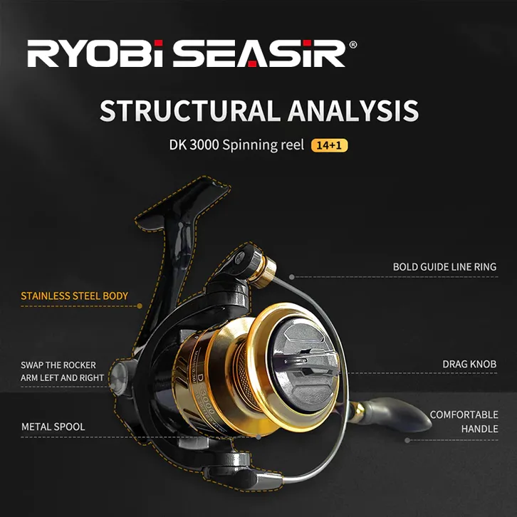 RYOBISEASIR DK Reel Pancing Full Besi Saltwater SW Semua Logam Memutar Spinning Reels Gulungan Putar 1000-7000 14 + 1BB