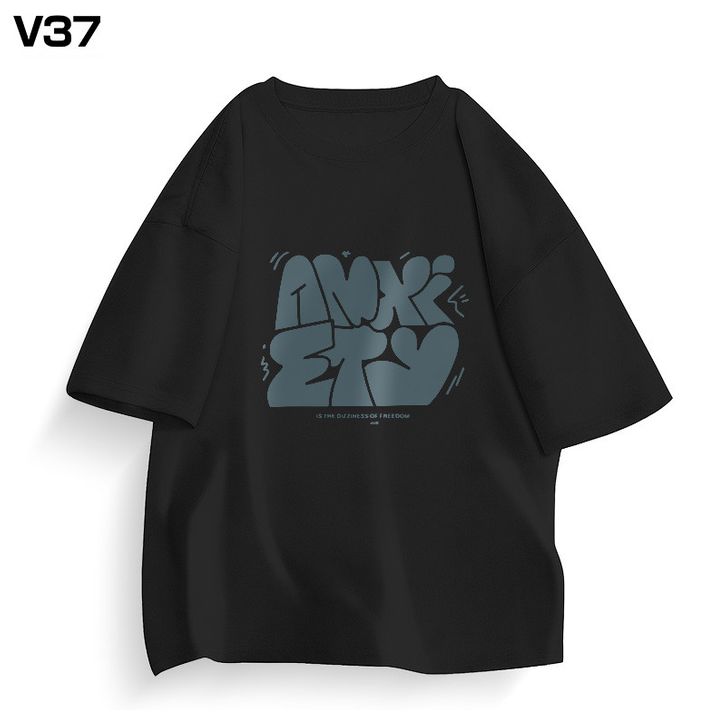 V37 T-Shirt Pria Premium 24s 200g Anxiety Kaos Unisex Short Sleeve Promo Baju Jumbo