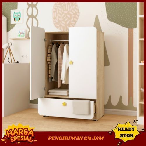 Lemari Pakaian Anak Bergambar karakter Kayu Minimalis Modern Rak Pakaian Gantung Sliding 3 Susun