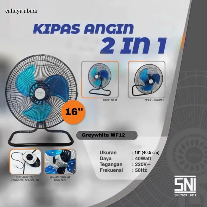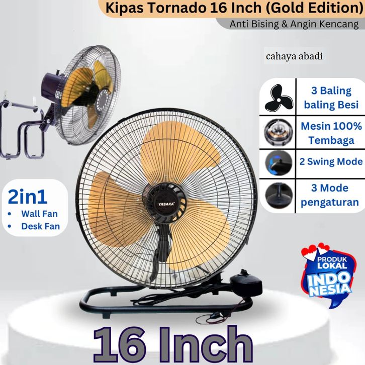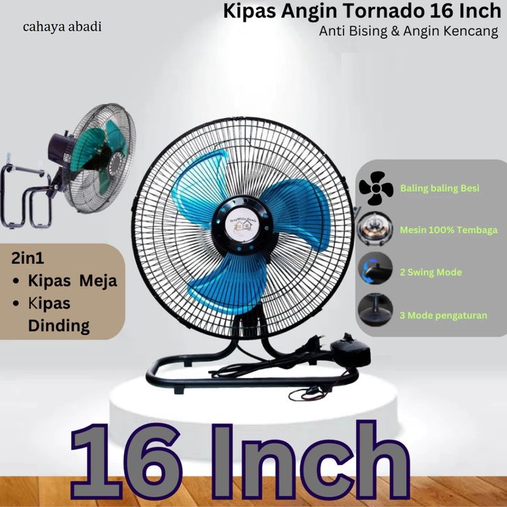 Kipas Angin Duduk Besi Tornado 16 INCH 2in1 Kencang Hemat Daya