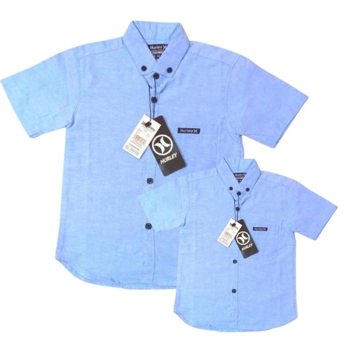 KEMEJA COUPLE KELUARGA WARNA BIRU DENIM PENDEK KEMEJA VIRAL KEMEJA POLOS TERMURAH