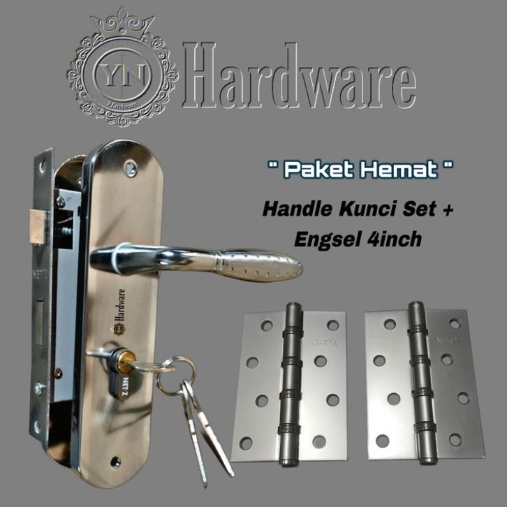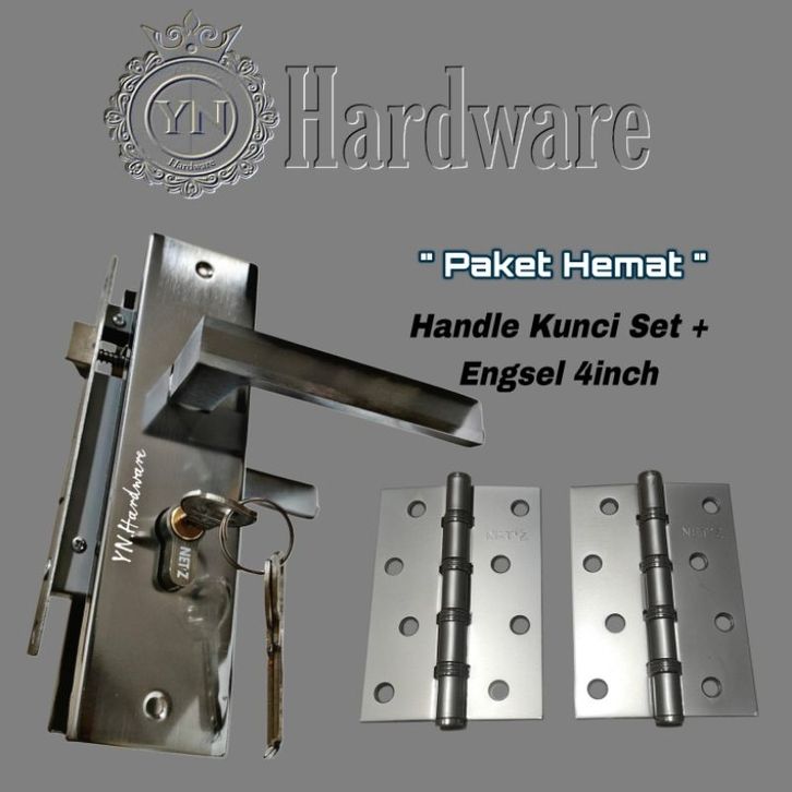 GAGANG KUNCI SET PINTU KOMPLIT UKURAN TANGGUNG 20 CM DAN BESAR 25 CM PAKET GAGANG KUNCI FULLSET + ENGSEL 4 INCH