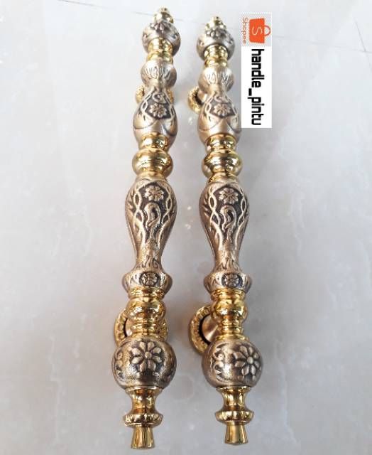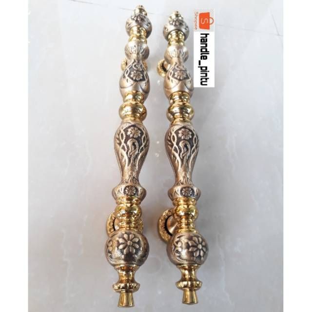 Handle Pintu Handle Pintu 2 pcs handle pintu kuningan ukir antik 9old 46cm