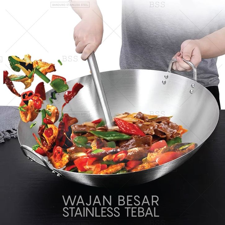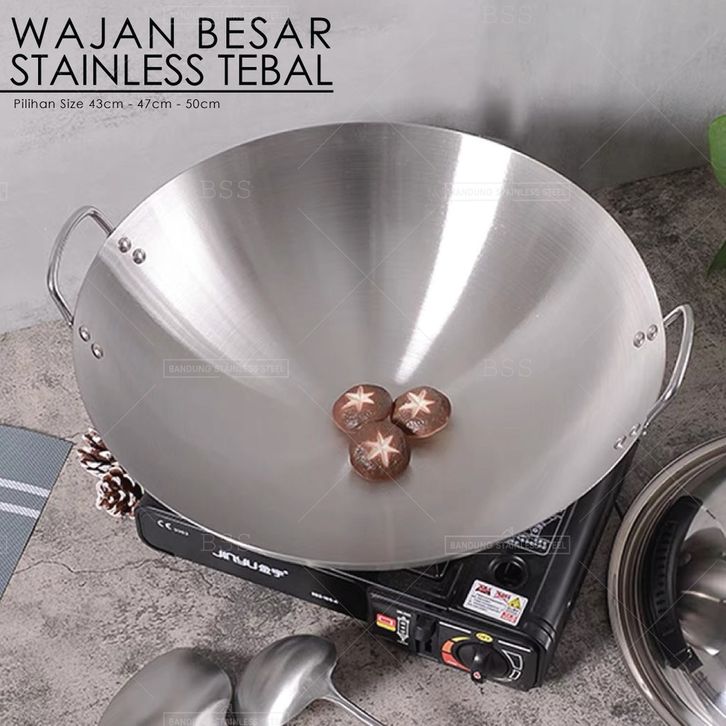 Wajan Kuali Kuali Wajan Wajan Besar 43cm 47cm 50cm Penggorengan Stainless Steel Tebal Wok Kuali Goreng