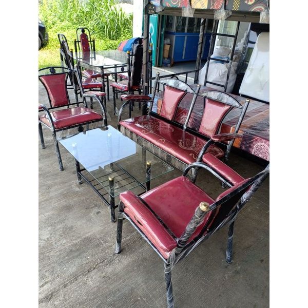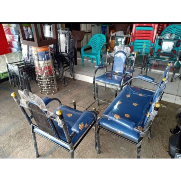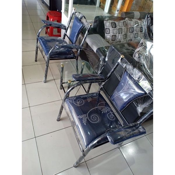 Kursi Tamu Besi 2+1+1+Meja Kaca