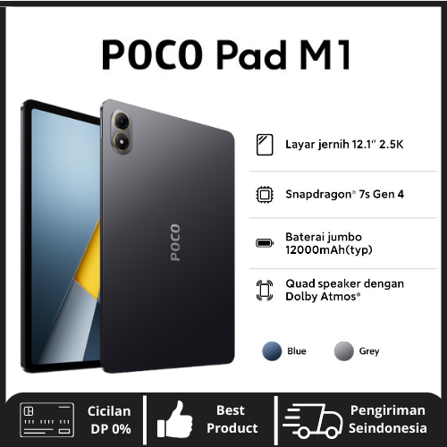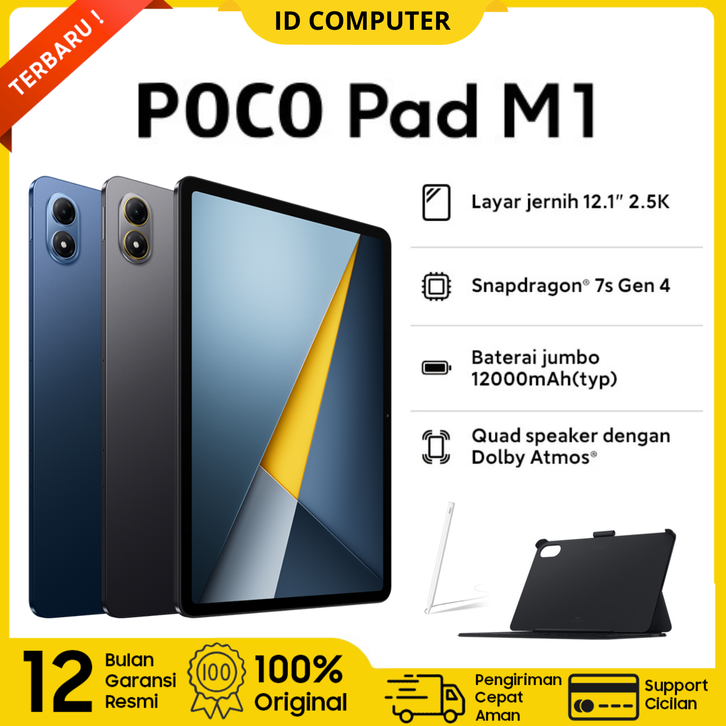 [Star] Tablet POCO Pad M1 8GB/256GB Layar jernih 12.1" 2.5K Snapdragon® 7s Gen 4 Baterai jumbo 12000mAH Garansi Resmi
