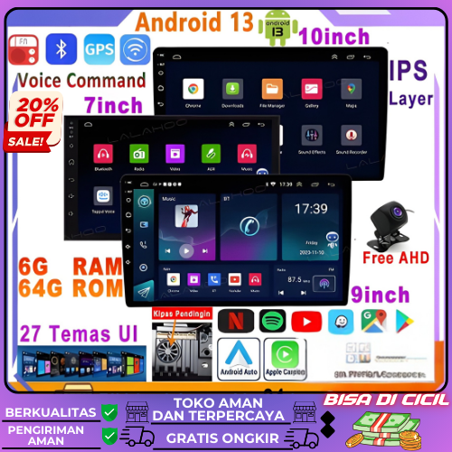 HEAD UNIT ANDROID LALAHOO 7/9/10 INCH DOUBLE DIN AUDIO TAPE MOBIL BLUETOOTH SATU PAKET GARANSI RESMI MURAH
