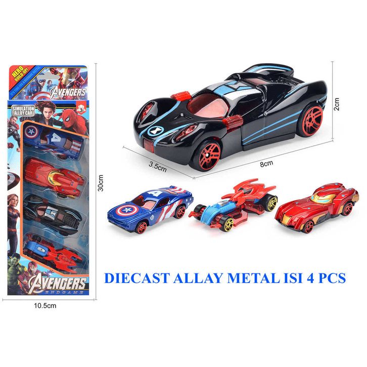 Mainan Diecast Mobil Superhero Isi 4 Pcs Mobil Alloy Metal Car Wheels Avengers terlaris, termurah,