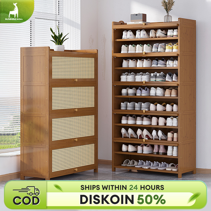 (FLASH SALE) Rak Sepatu Rotan Lemari Sepatu Kayu Jaring Bernapas Rak Lemari Sepatu Tertutup Serbaguna