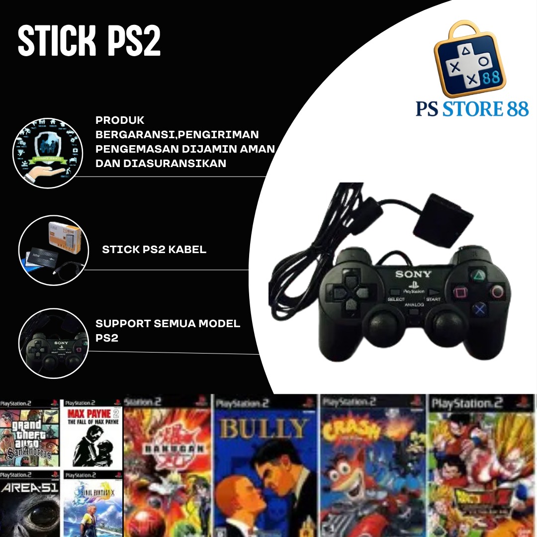Stick PS2 Getar Aktif | Analog | Kabel Panjang | Nyaman & Awet
