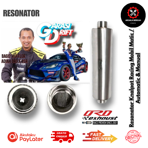 ORD Resonator Knalpot Racing Mobil Matic / Automatic & Manual suara Soft - Silent - Kering - Bass Bulat Padat