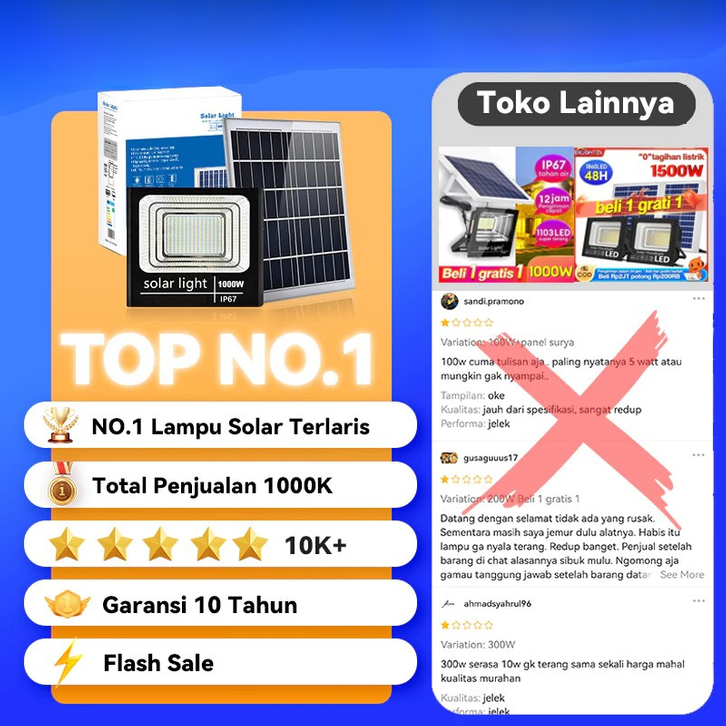 [Beli 1 Gatis 1] Luuga Lampu tenaga surya outdoor lampu sorot solar cell otomatis Lampu solar panel Tahan air IP67 LED