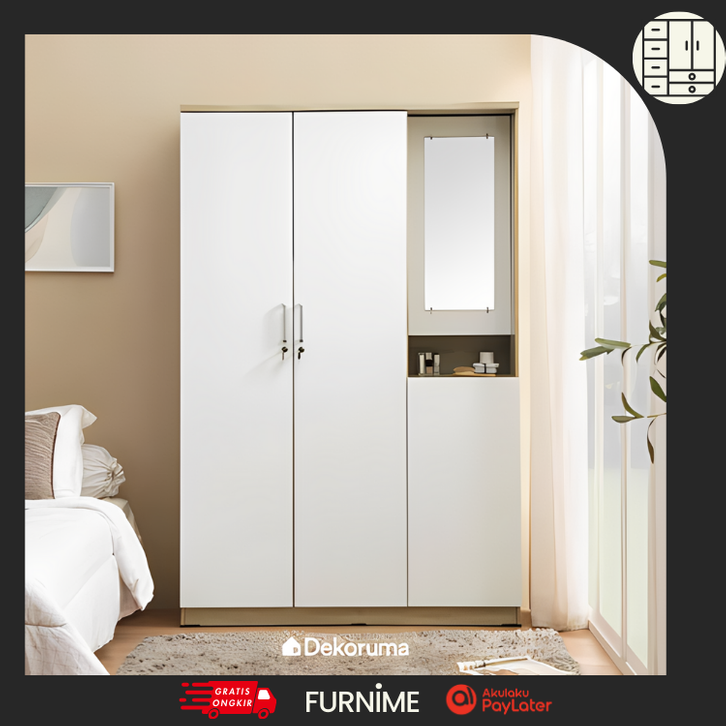 Lemari Pakaian Oak White Dekoruma / Wardrobe - Cubic LUNA LPM 301