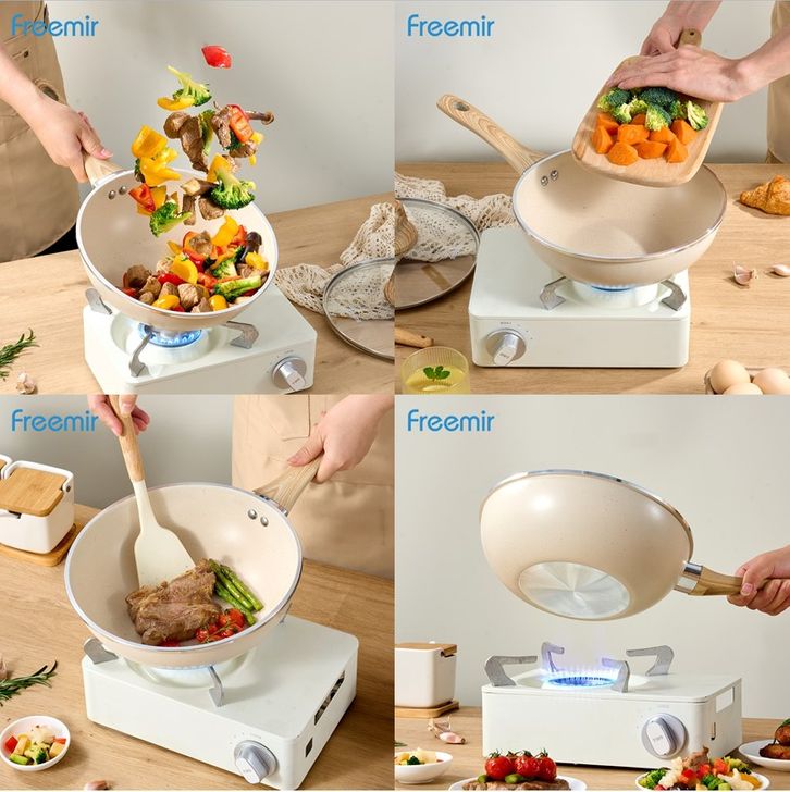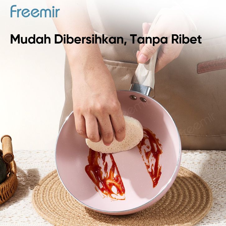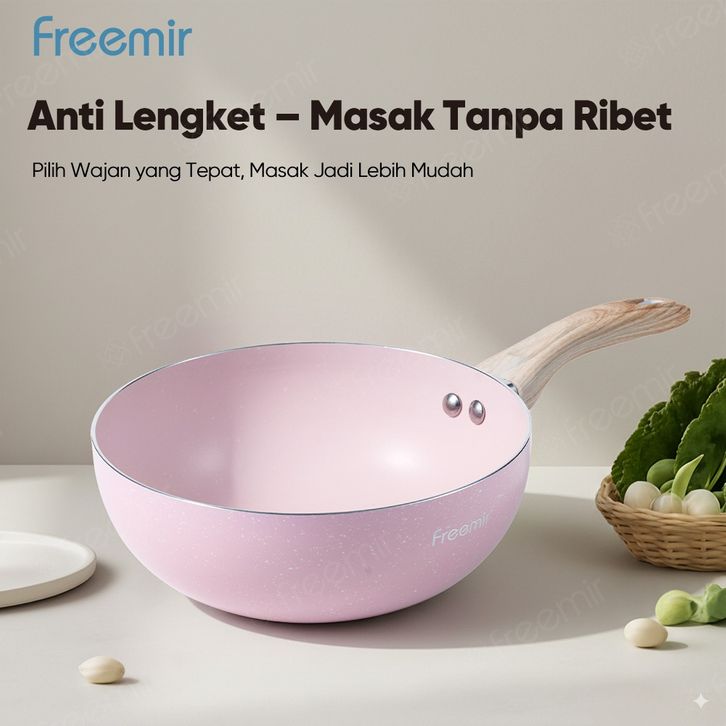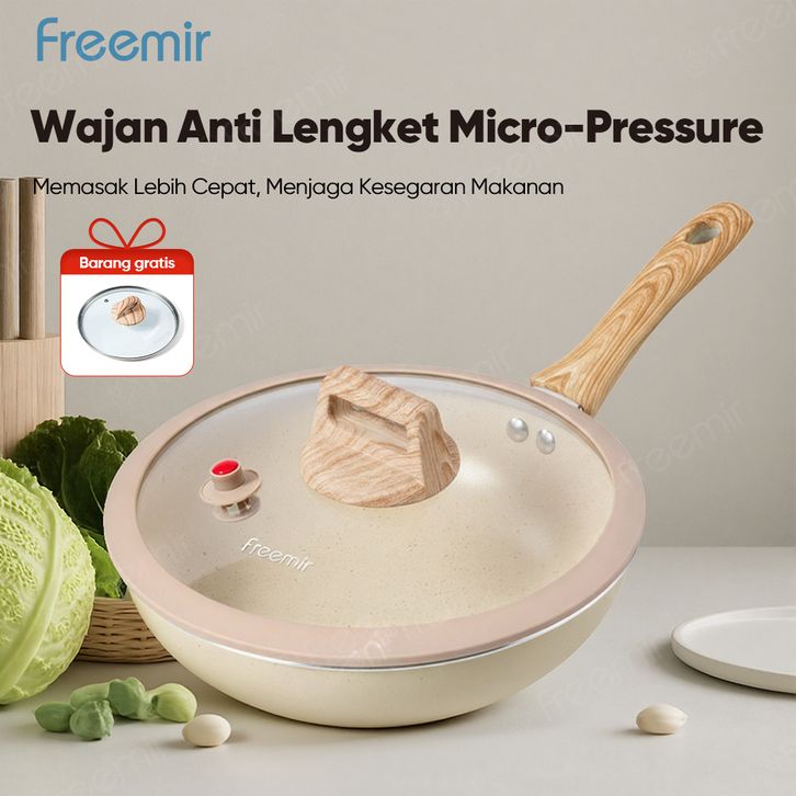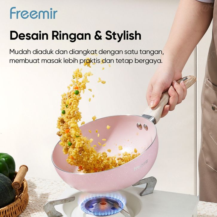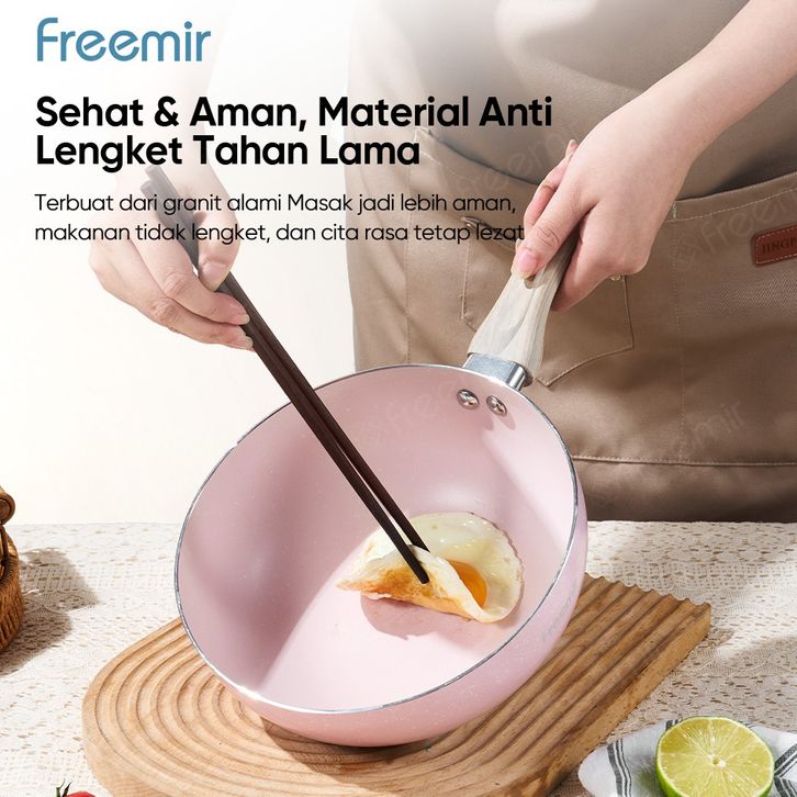Special Freemir Wokpan Beige 24Cm Granite Anti Lengket Bisa Semua Masakan Dengan Tutup Kaca Premium Wajan Penggorengan