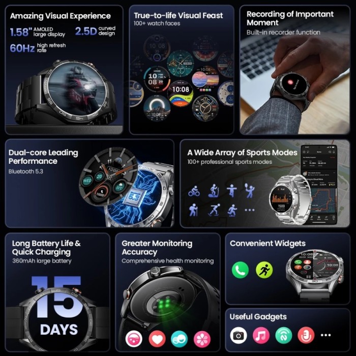 HAYLOU SOLAR 5 SMARTWATCH 1.58" AMOLED HD DISPLAY AOD SPO2 ADVANCE SMART WATCH BT CALL IP68